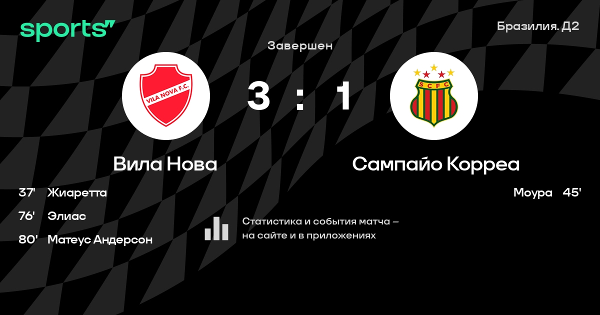 Андрей - Алисон, Маракас, Жоэсио, Моура - Адниэллисон, Виллиам, Марлон Адриано, Даниэлзиньо, Бруниньо - КарлаоЗапасные: Варлесон, Фредсон, Жоао Пауло, Эскердинья, Фернандо Собрал, Диего Силва, Жоао Витор, Уиллиам, Алвиньо