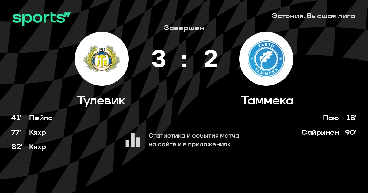 Пехтер - Сайринен, Грауберг, Андерсон, Слащев - Каппер, Лаабус, Текко, Паю - Йыги, КоскорЗапасные: Vaabel, Маанас, Нуума, Ярвисте, Lall, Ульянов, Рейнкорт