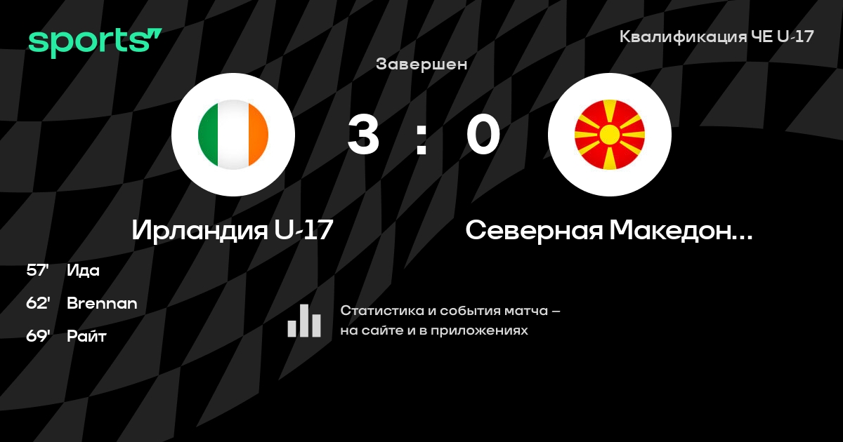 Трансляция Ирландия U-17 - Северная Македония U-17