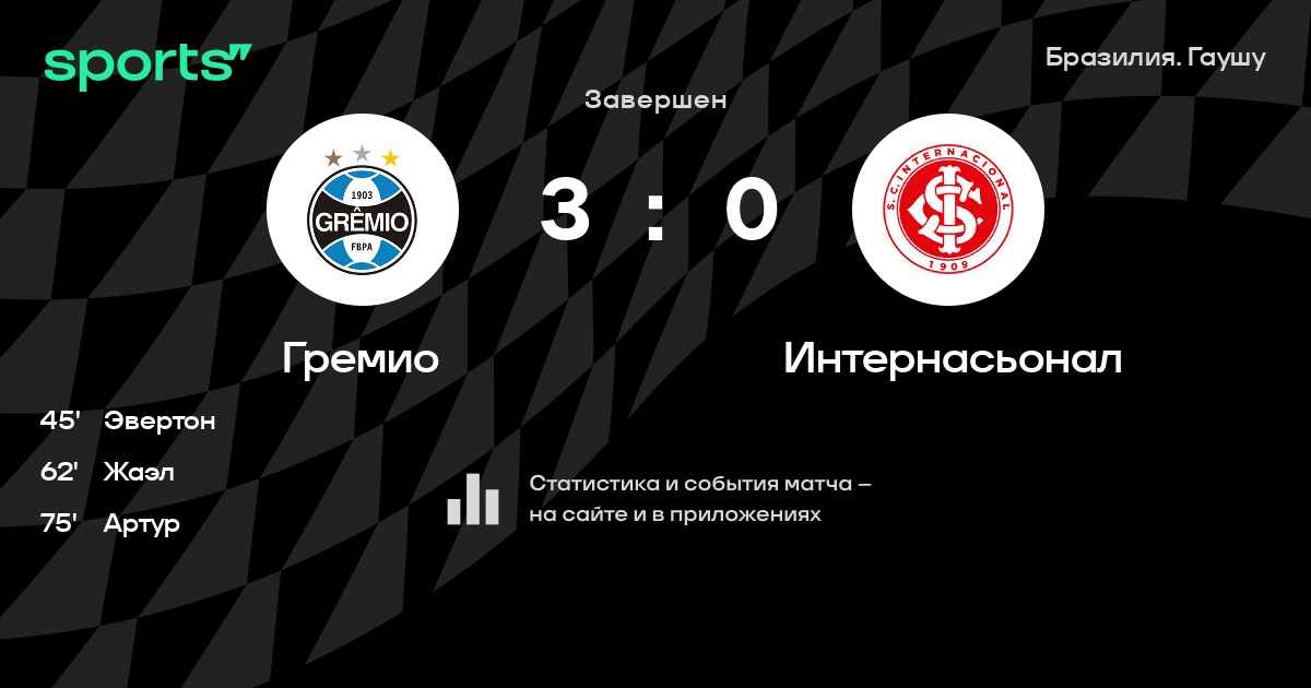 Гроэ - Кортес, Жеромел, Каннеманн, Лео Моура - Жаилсон, Рамиро, Майкон - Жаэл, Эвертон, ЛуанЗапасные: Пауло Виктор, Мадсон, Оливейра, Брессан, Мишел, Винисиус Лима, Артур, Сисеро, Тони Андерсон, Алиссон, Эрнане
