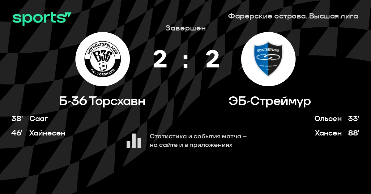 Б-36 Торсхавн – ЭБ-Стреймур: Б-36 Торсхавн забивает в 3 последних матчах против этого соперника