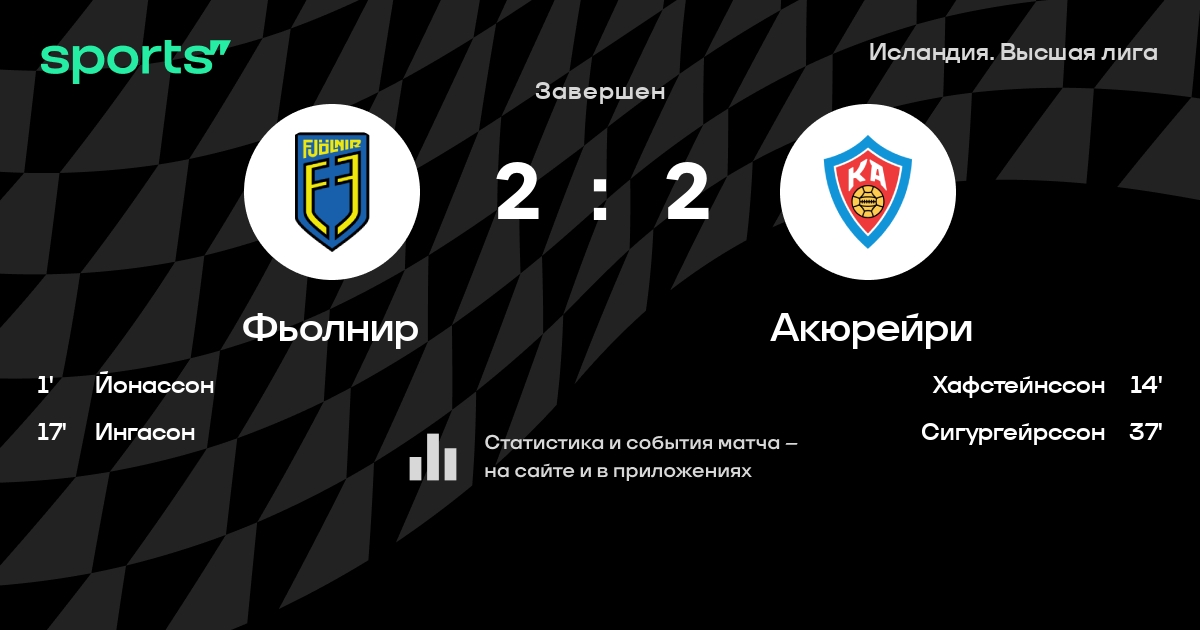 Martinez Liberato - Sigurgeirsson, Йонассон, Steingrímsson, Трнинич, Williams - Стейнгримссон, Нкуму, Хафстейнссон - Адальстейнссон, СигургейрссонЗапасные: Gislason, Geirsson, Antonsson, Petursson, Brynjolfsson, Olgeirsson, Sölvason