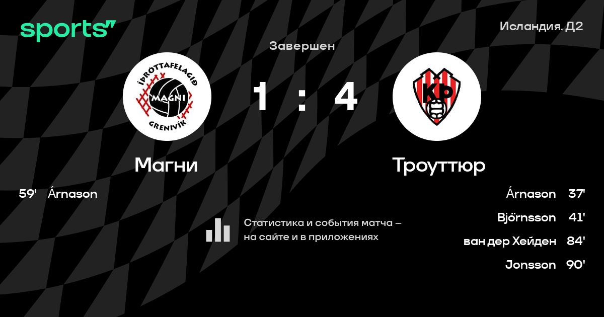 Петюрссон - Björnsson, Фридрикссон, Örnólfsson, Hauksson - Альбертссон, Харальдссон - Бергссон, Kristjánsson, Торвардарсон, JónssonЗапасные: Geirsson, Jakobsson, Паульмасон, Konráðsson, Роллинсон, ван дер Хейден, Атласон