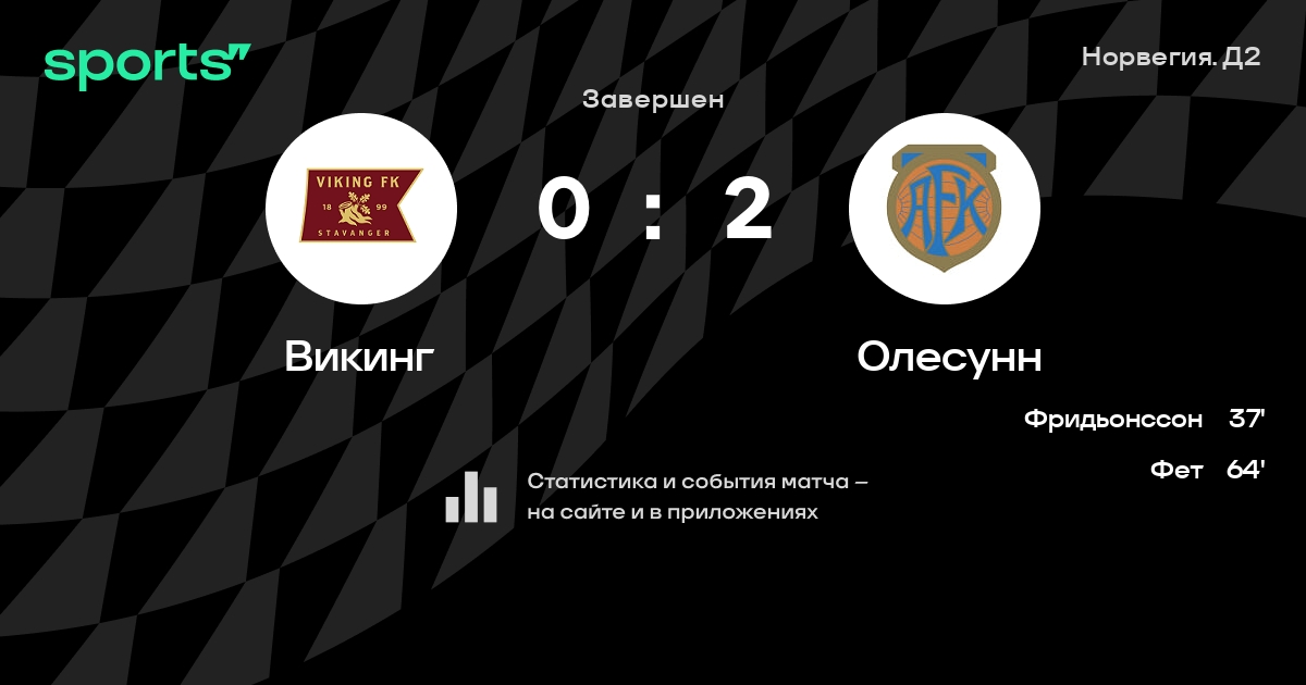Викинг – Олесунн: Олесунн не проигрывает в 6 из 8 последних матчей против этого соперника в гостях в турнире «Норвегия. Д2»
