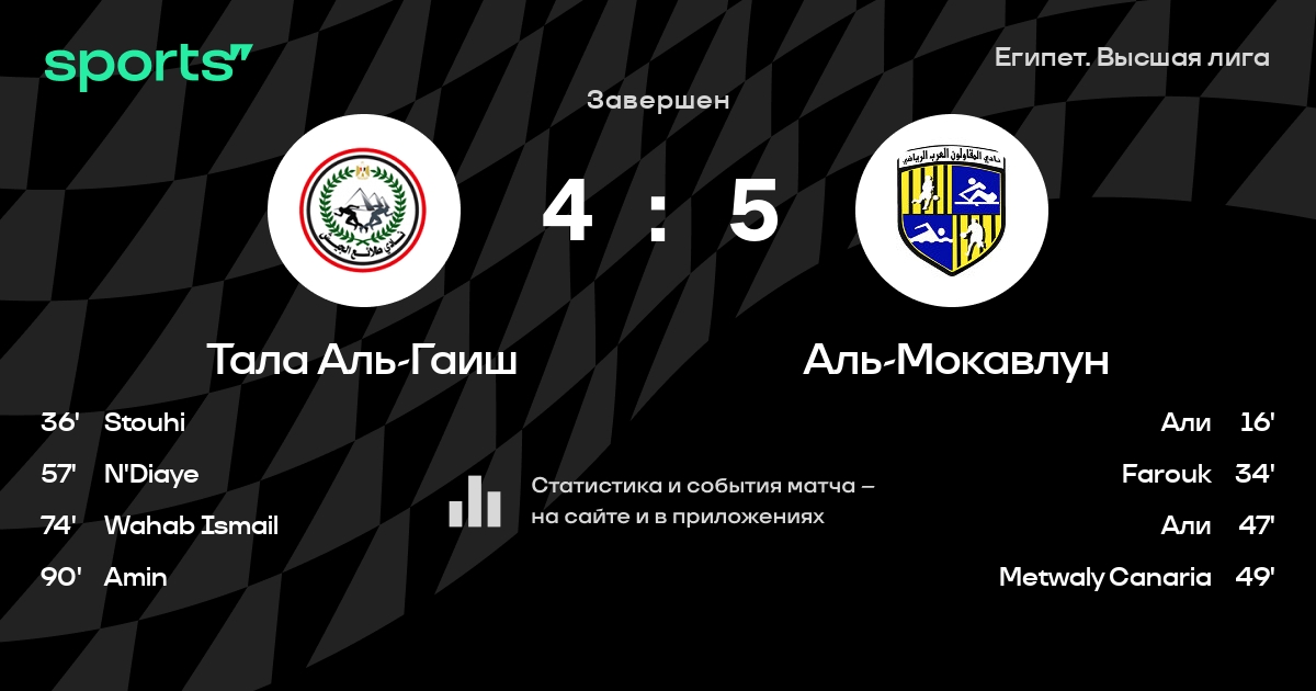 Тала Аль-Гаиш – Аль-Мокавлун: коэффициенты