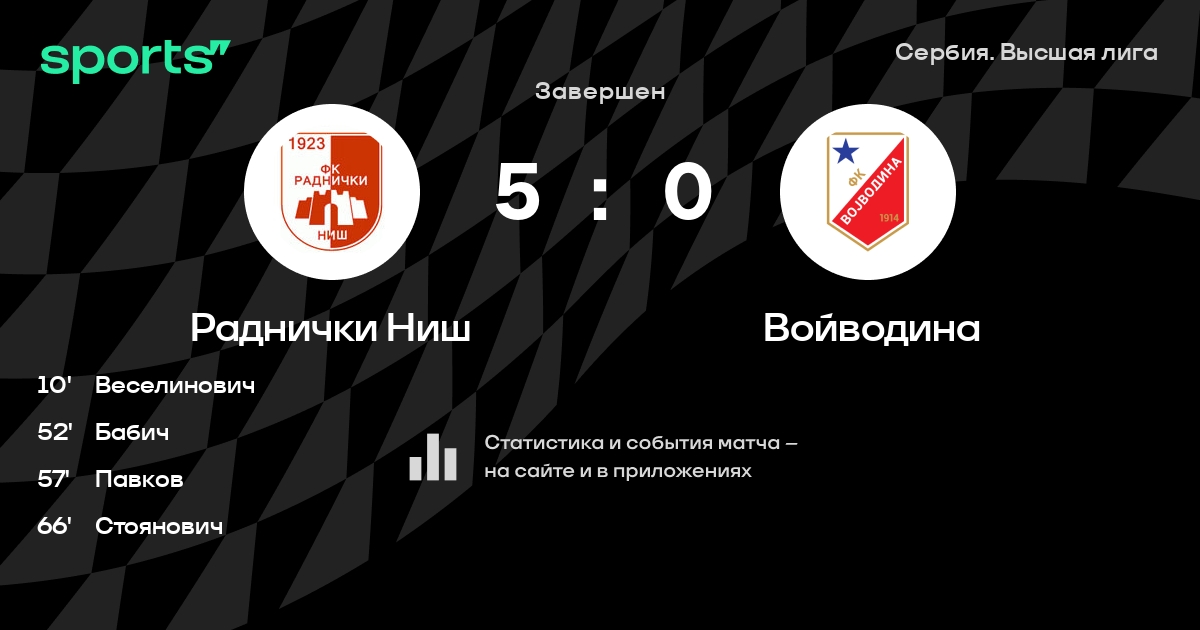Шаранов - Симунович, Субич, Мияйлович - Йованович, Бабич, Мичич, Нома, Станисавлевич - Павков, Стоянович