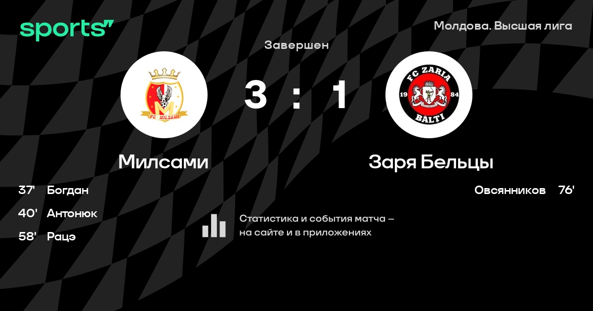 | 8 | Заря Бельцы | 28 | 4 | 10 | 14 | 26 | 46 | -20 | 22 | ||