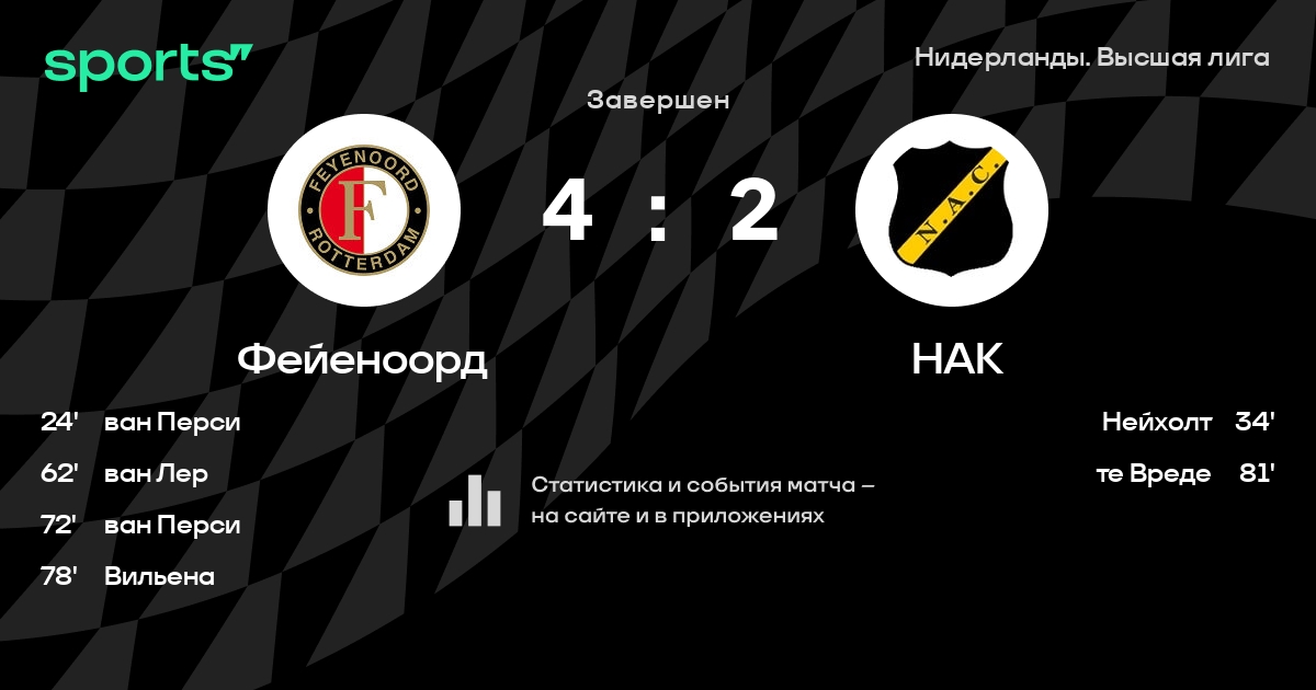 Фейеноорд – НАК: НАК побеждает в 3 последних очных матчах в турнире «Голландия. Высшая лига»