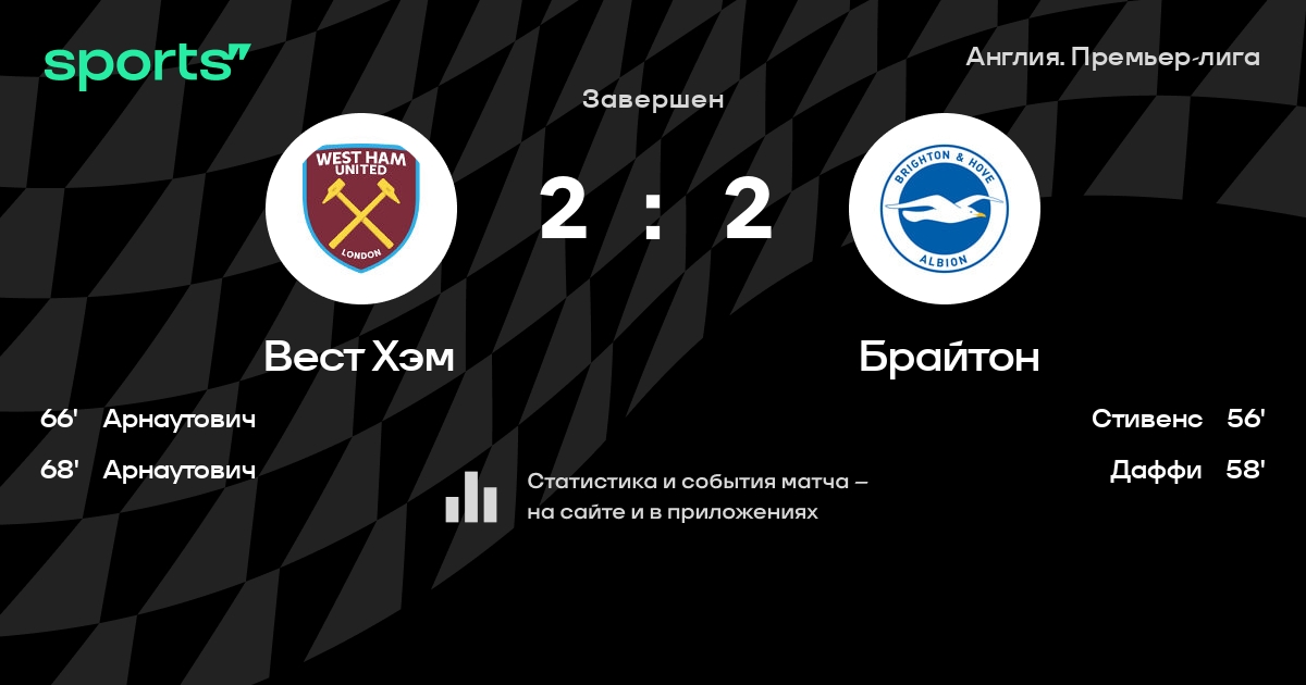 Фабианьски - Крессуэлл, Огбонна, Диоп, Сабалета - Фелипе Андерсон, Райс, Обианг, Снодграсс - Арнаутович, КэрроллЗапасные: Адриан, Масуаку, Насри, Нобл, Антонио, Диангана, Лукас Перес
