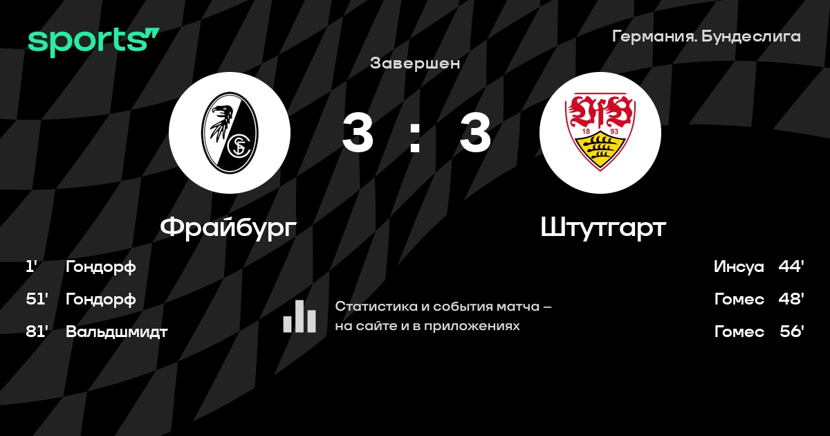 Чемпионат Германии. «Фрайбург» сыграл вничью со «Штутгартом» – 3:3