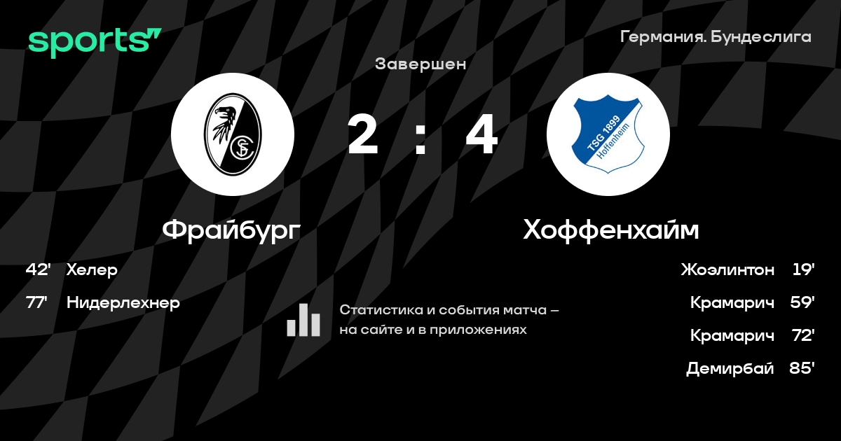 Бауманн - Шульц, Хюбнер, Фогт, Кадержабек - Демирбай, Гриллич, Гайгер - Жоэлинтон, Крамарич, СалаиЗапасные: Штольц, Бичакчич, Бренет, Пош, Амири, Битенкур, Бельфодиль