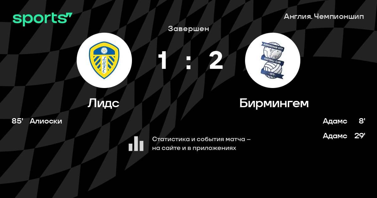 Чемпионшип. «Лидс» проиграл «Бирмингему», «Дерби Каунти» победил «Брентфорд»