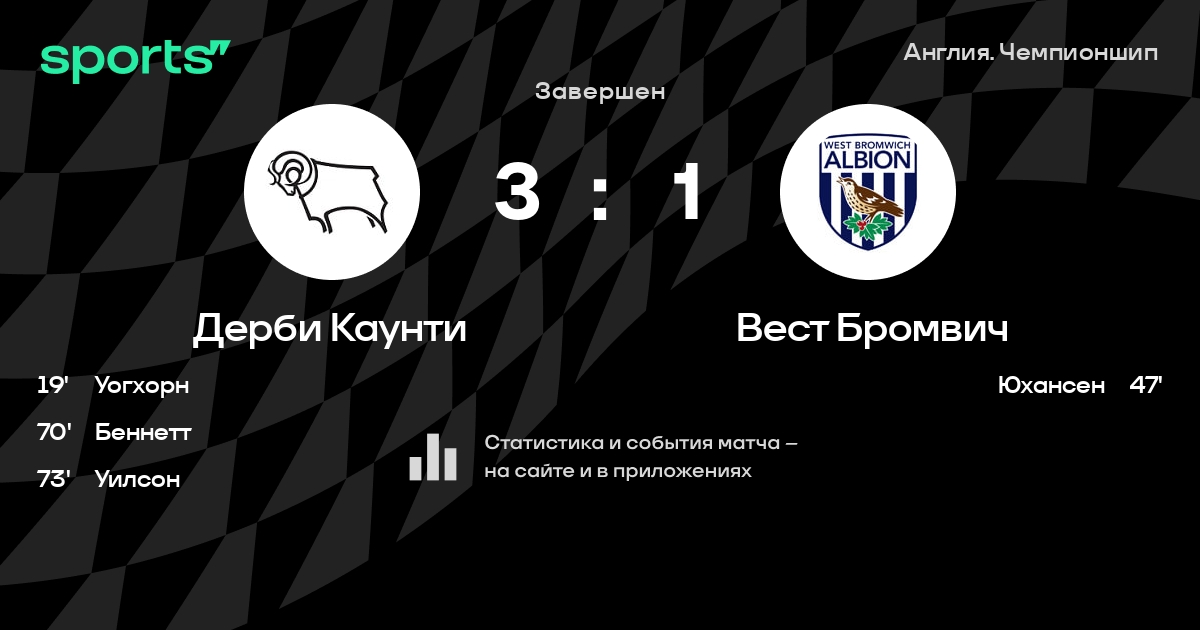 Дерби Каунти - Вест Бромвич: положение в турнире