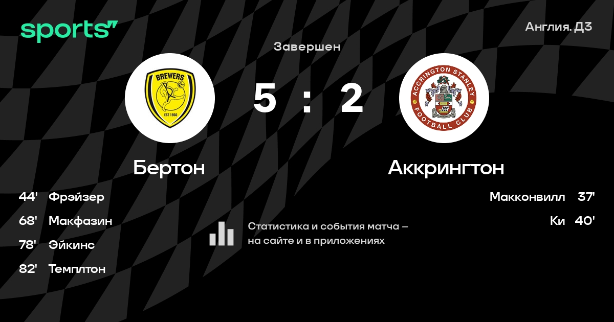 Мэкстед - Донасьен, Хьюз, Роджерс, Джонсон - Кларк, Барлейзер, Финли, Макконвилл - Браун, КиЗапасные: Сейвин, Ричардс-Эвертон, Вуд, Коннили, Армстронг, Эрику Соуза, Симмондз