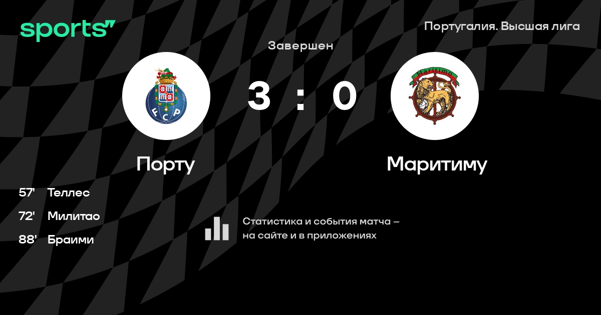 Касильяс - Теллес, Пепе, Фелипе, Милитао - Корона, Данилу Перейра, Эррера, Отавио - Соарес, МарегаЗапасные: Вана, Манафа, Макси Перейра, Оливер Торрес, Фернандо, Браими
