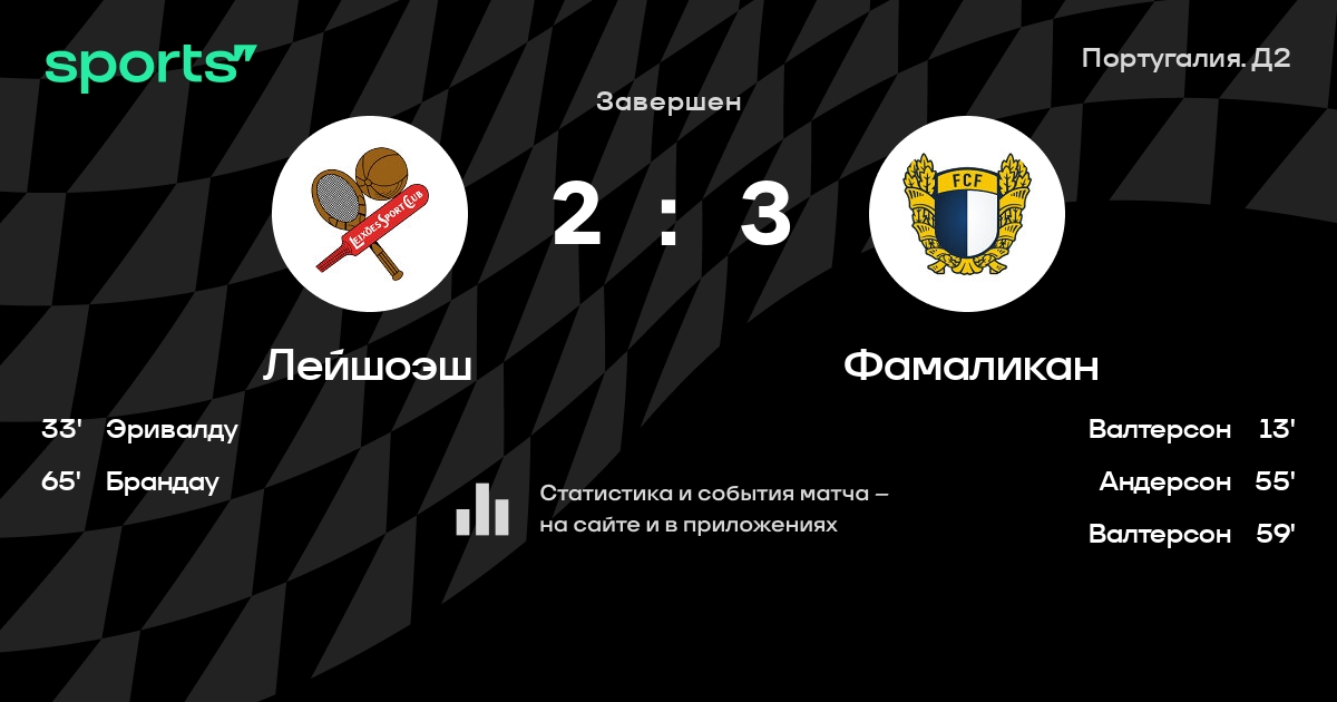 Дефенди - Жорже Мигел, Роша, Гарсия, Рикарду - Капела, Сисс - Фелиш, Валтерсон, Андерсон, ФабрисиоЗапасные: Габриэл, Менезеш, Жоэл Монтейру, Гуззо, Фабинью, Хочко, Эшли-Сил