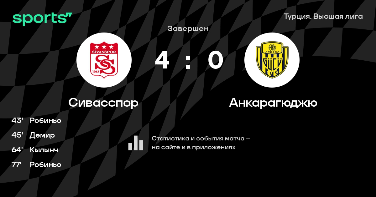 Аджар - Чифтчи, Браз, Бьерсмюр, Дуглас Перейра - Ндинга, Арслан, Кылынч, Рыбалка, Робиньо - ДемирЗапасные: Рочет, Вурал, Эрдал, Папп, Карабулут, Яндаш, Есильюрт, Гои-Би, Коне, Торже