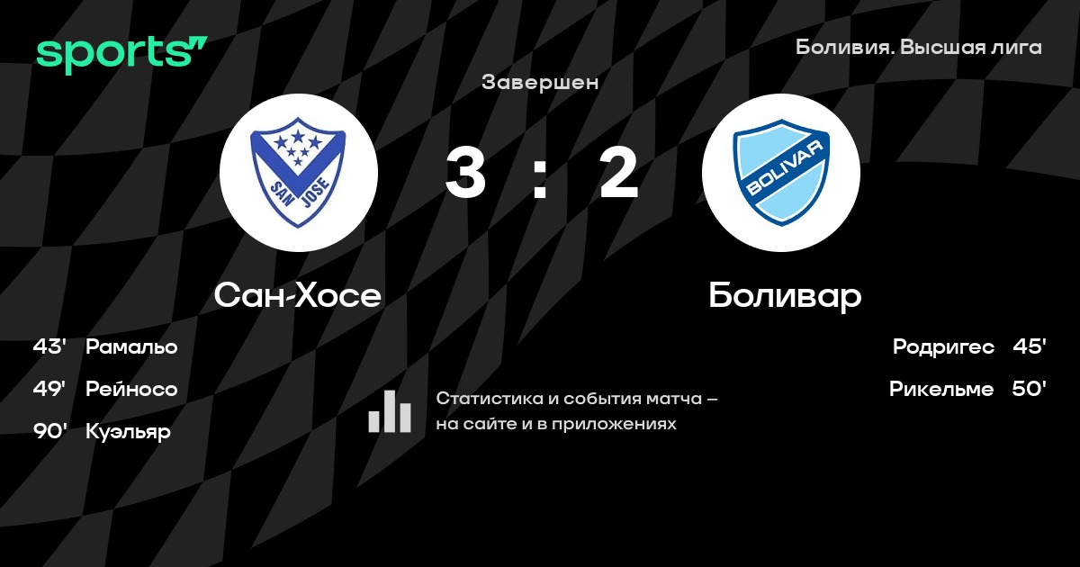 Кареага - Куэльяр, Баррера, Хуарес, Торрико - Сангинетти, Гомес, Мельгар, Торрико - Рамальо, РейносоЗапасные: Сальватьерра, Леаньос, Чека, Кондори, Овандо, Сеговия, Фернандес