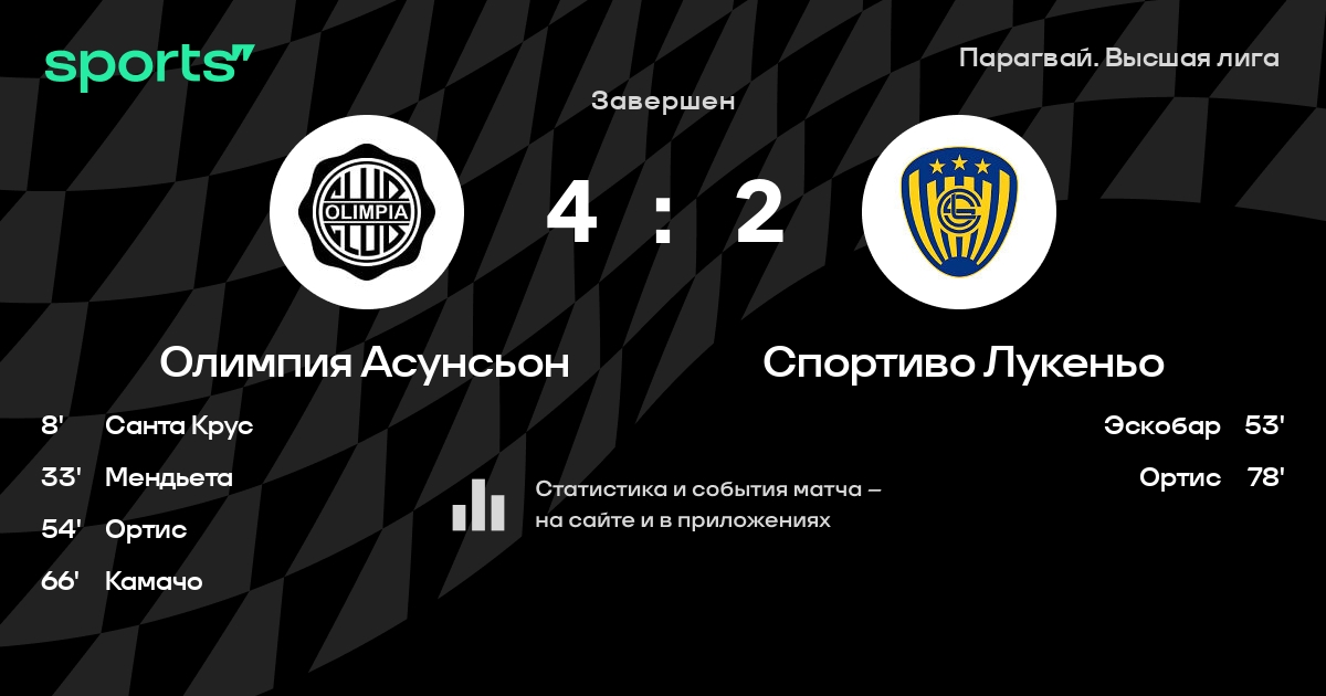 Трансляция Олимпия Асунсьон - Спортиво Лукеньо