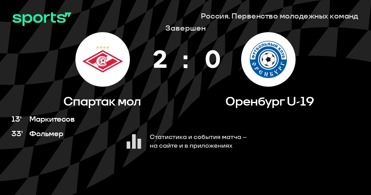 Первенство молодежных команд. «Спартак» победил «Оренбург» – 2:0