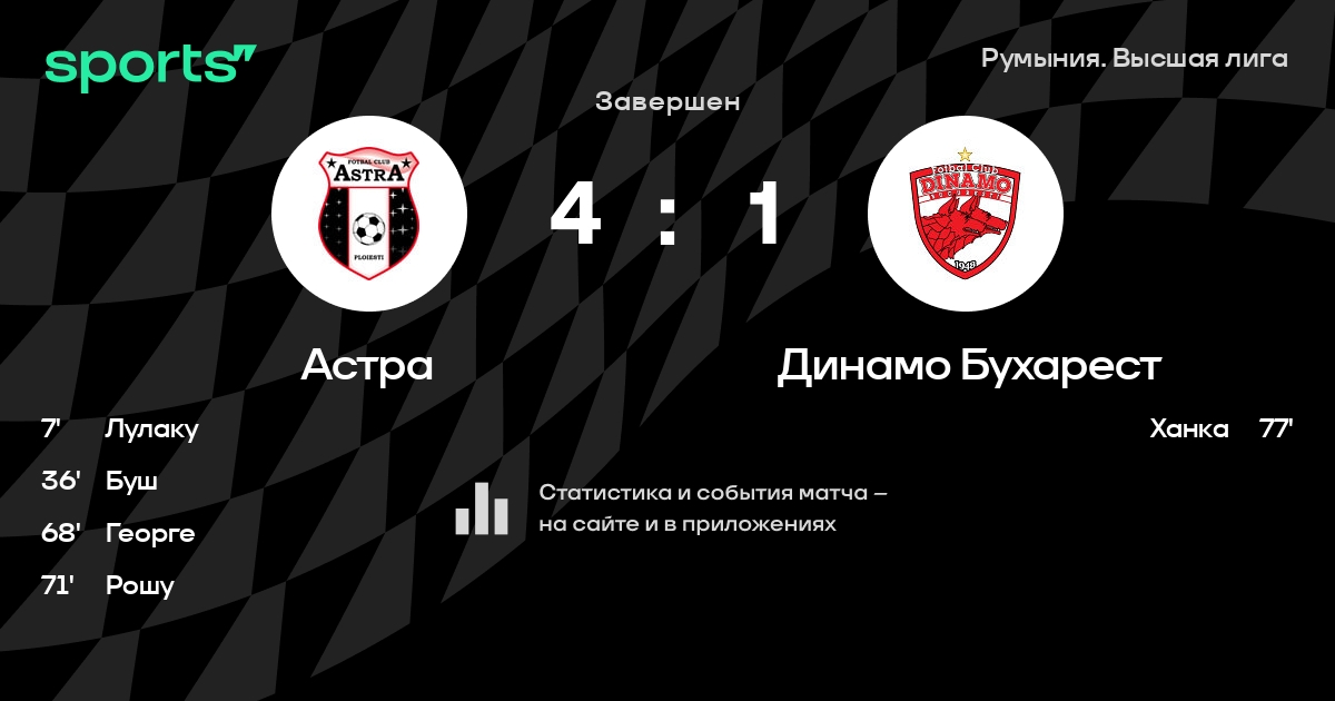 Трансляция Астра - Динамо Бухарест
