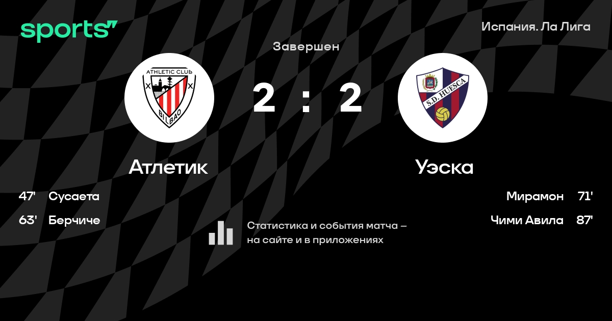 Чемпионат Испании. «Атлетик» сыграл вничью с «Уэской», «Леванте» уступил «Сельте»