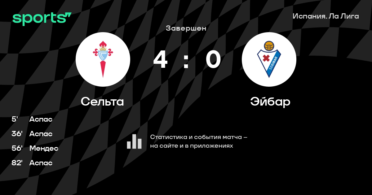 «Сельта» прервала 6-матчевую безвыигрышную серию в примере. Аспас сделал хет-трик