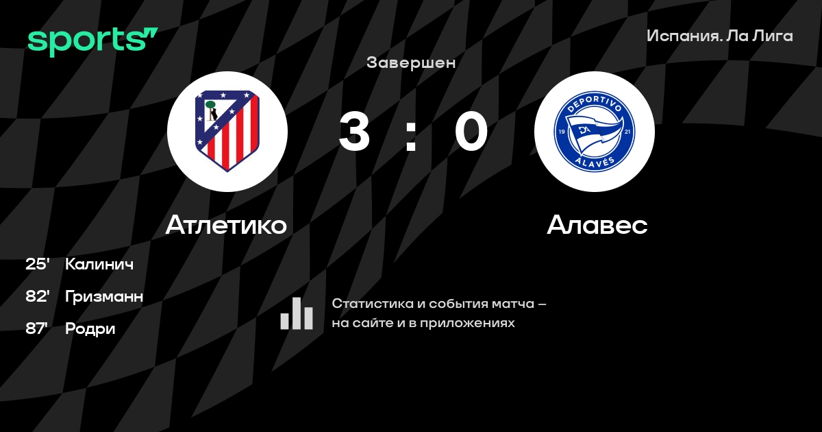 «Атлетико» разгромил «Алавес» (3:0) и догнал «Барселону» по набранным очкам
