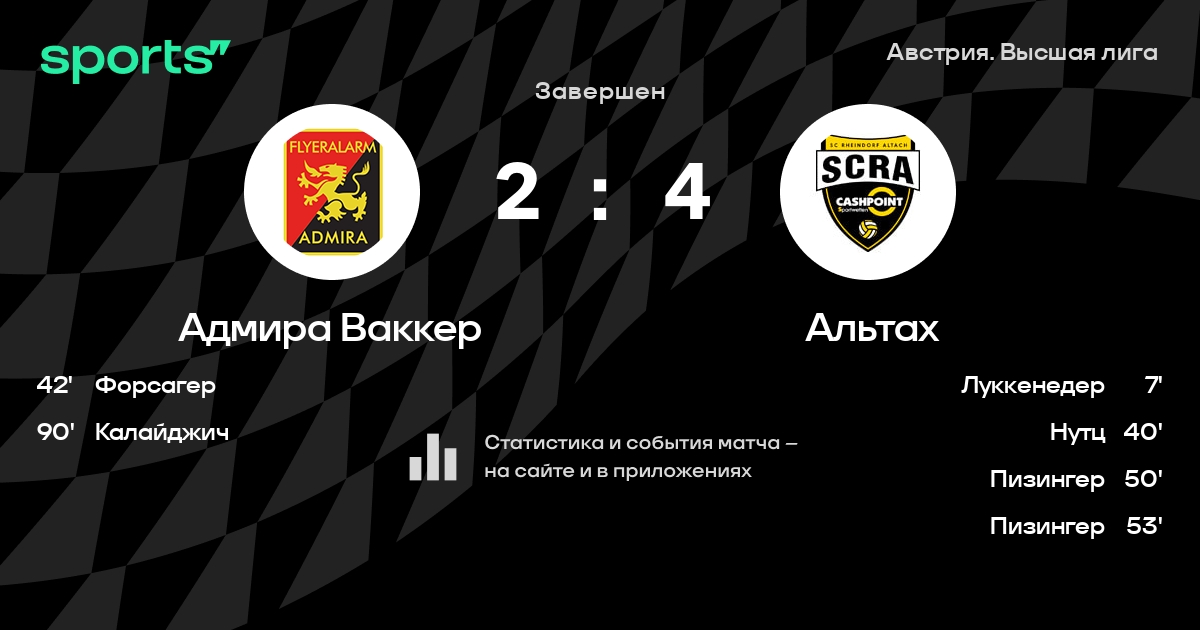 Луксе - Шрайнер, Луккенедер, Цех, Пизингер, Линхарт - Нутц, Мюллер, Фишер - Гебауэр, МвилаЗапасные: Ожегович, Карич, Добрас, Айгнер, Майлингер