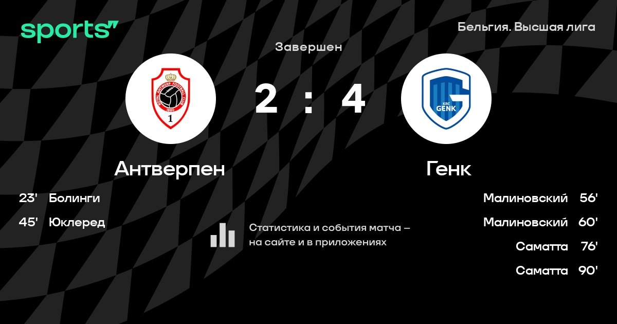 | 4 | Антверпен | 10 | 4 | 2 | 4 | 12 | 16 | -4 | 39 | ||