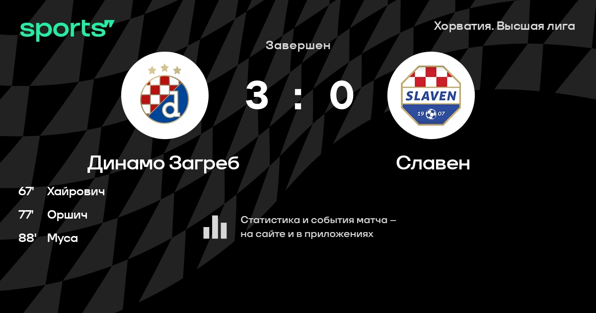 1 | Динамо Загреб | 36 | 29 | 5 | 2 | 74 | 20 | +54 | 92 | ||