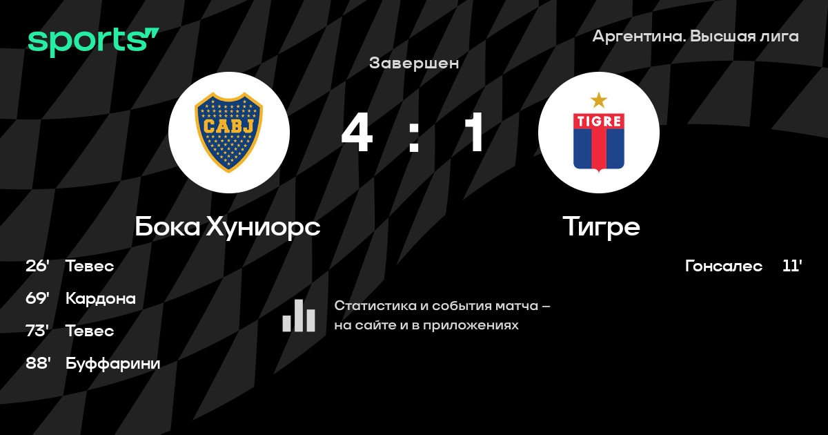 Росси - Мас, Балерди, Гольц, Буффарини - Альмендра, Гаго, Кардона, Тевес, Сарате - БенедеттоЗапасные: Бустильос, Эредия, Перуцци, Эспиноса, Ламардо, Рейносо, Чикко
