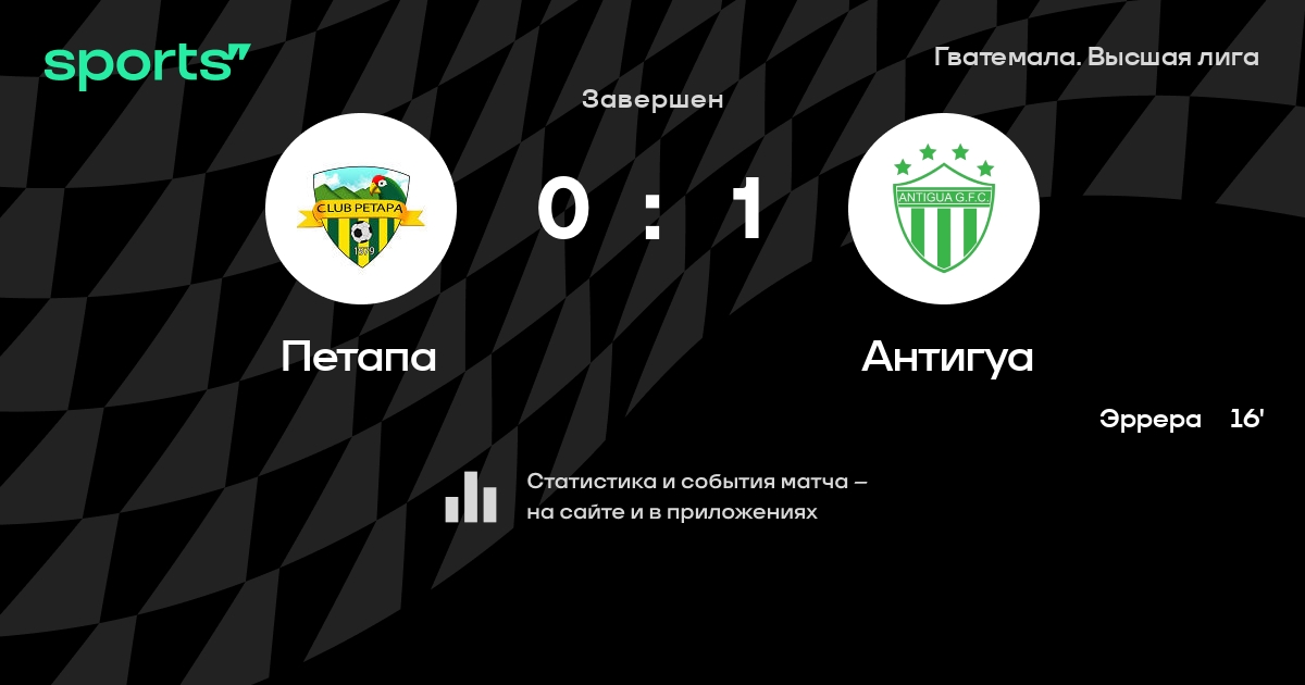 | 1 | Антигуа | 22 | 12 | 5 | 5 | 36 | 20 | +16 | 41 | ||