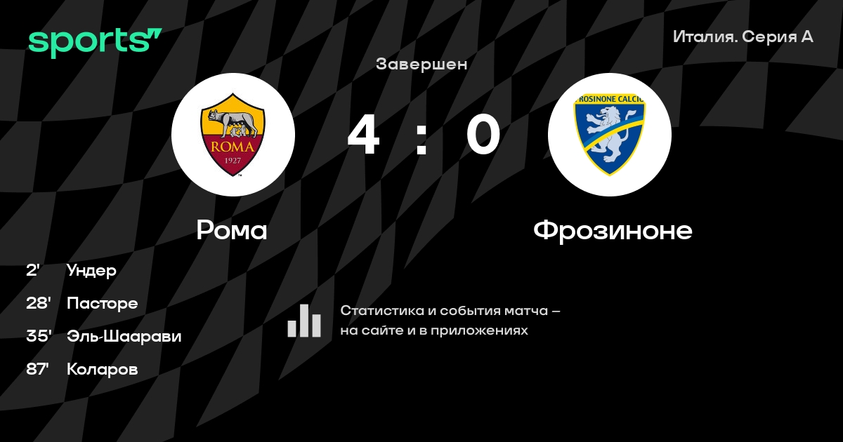 Ольсен - Коларов, Фасио, Манолас, Сантон - Нзонзи, де Росси, Пасторе, Эль-Шаарави, Ундер - ШикЗапасные: Фузато, Миранте, Флоренци, Карсдорп, Маркано, Жезус, Пеллегрини, Кристанте, Пеллегрини, Дзаньоло, Джеко, Клюйверт