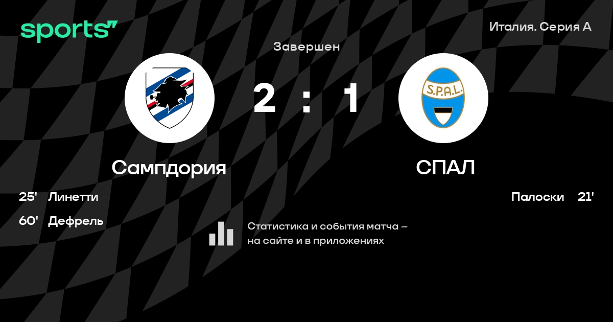 Чемпионат Италии. «Сампдория» победила СПАЛ