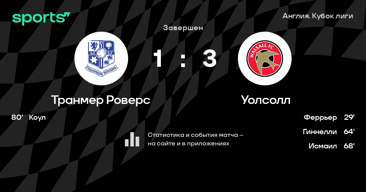 Транмер Роверс - Уолсолл: положение в турнире