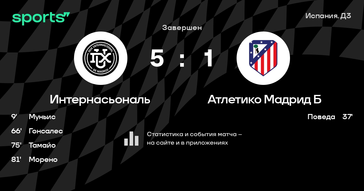 Трансляция Интернасьональ - Атлетико Мадрид Б
