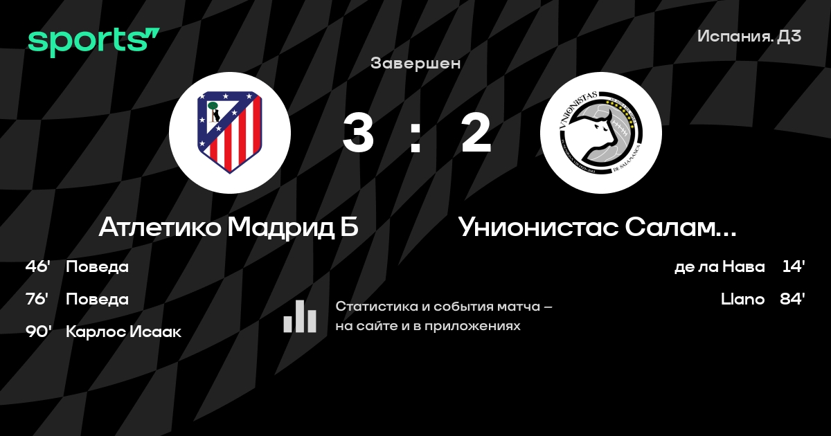 Трансляция Атлетико Мадрид Б - Унионистас Саламанка