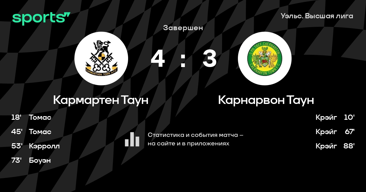 Кармартен Таун - Карнарвон Таун: положение в турнире