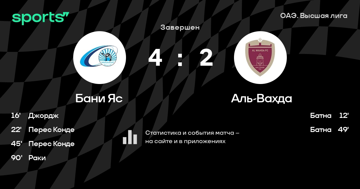 Аль-Данани - Джабер, Аль-Мухаррами, Робсон, Дада - Аль-Нуби, Ортега, Ауана, Салех, Джордж - Перес КондеЗапасные: Халаф, Хашеми, Хамад, Аль-Менали, Ахмед, Аль-Шамси, Alhammadi, Раки, Малалла