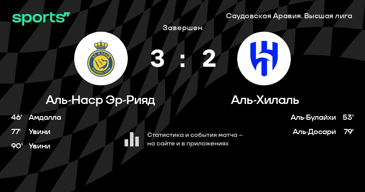 Аль-Наср Эр-Рияд – Аль-Хилаль: коэффициенты