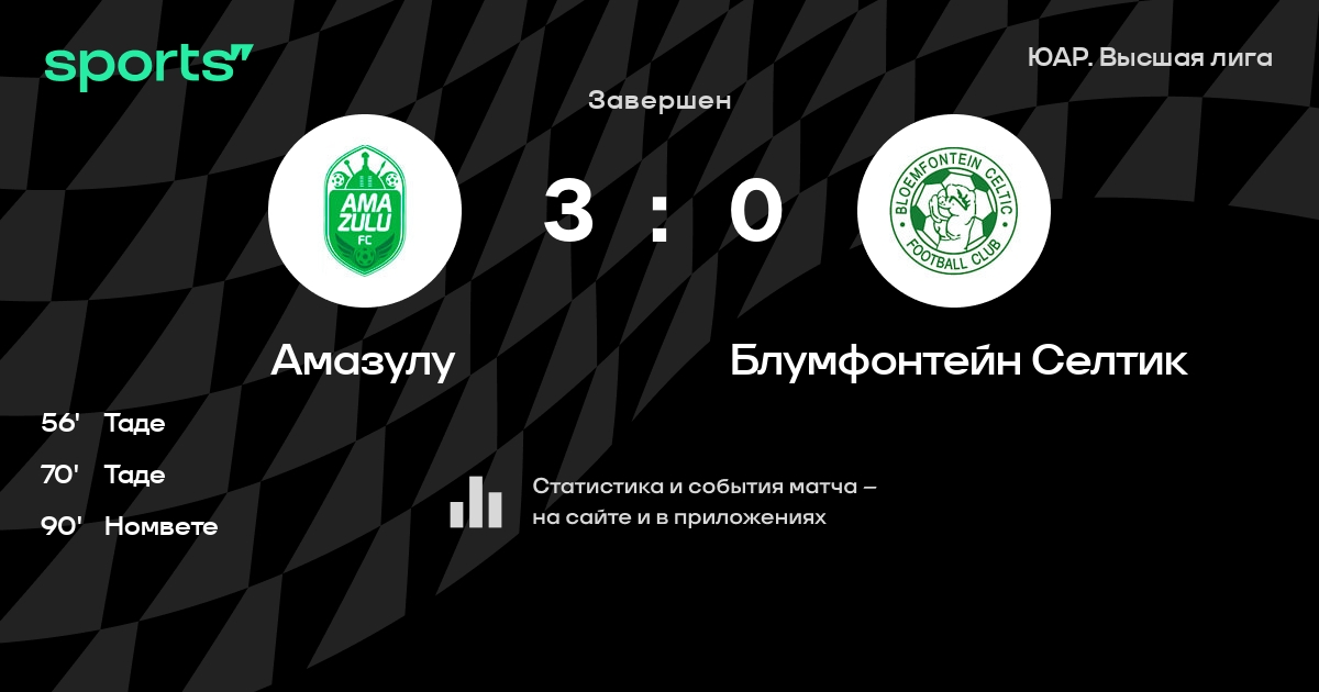 Амазулу – Блумфонтейн Селтик: коэффициенты