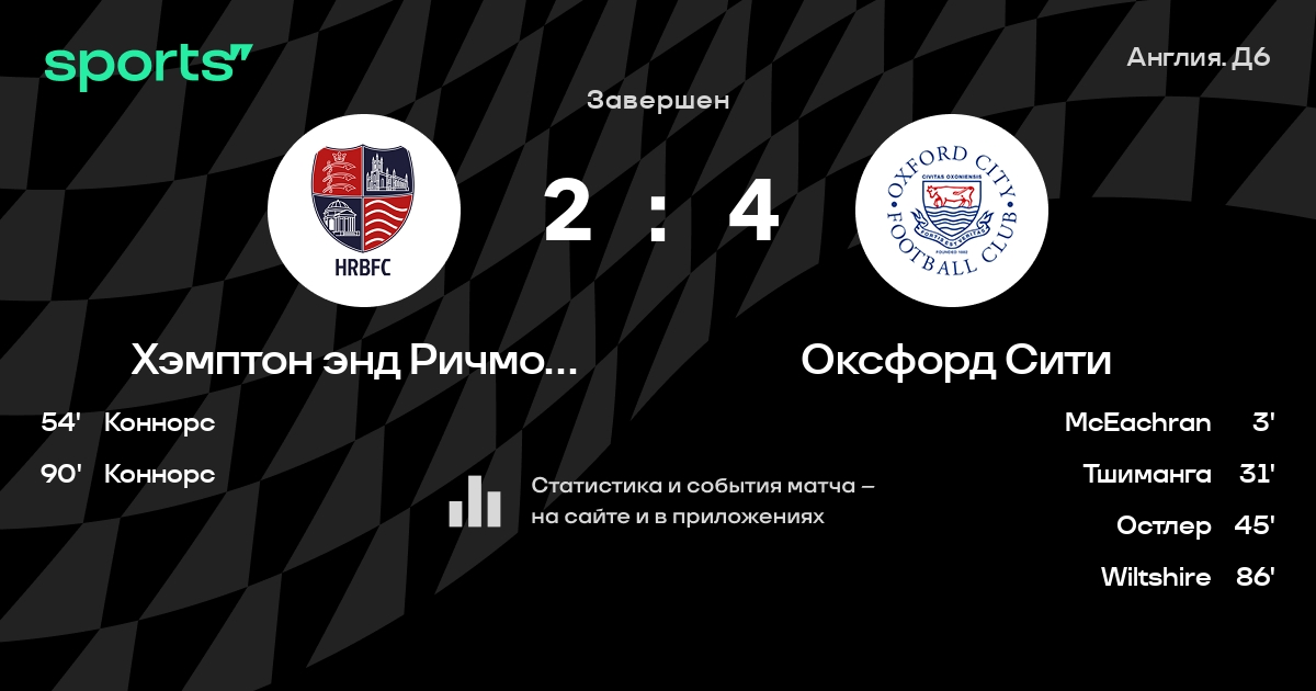 Трансляция Хэмптон энд Ричмонд - Оксфорд Сити