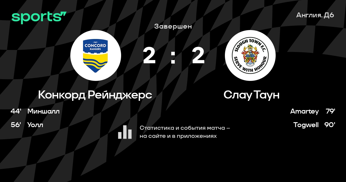 Конкорд Рейнджерс - Слау Таун: статистика матча