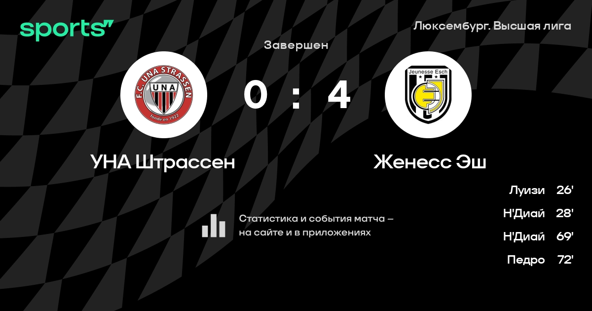 | 7 | УНА Штрассен | 26 | 12 | 3 | 11 | 46 | 43 | +3 | 39 | ||