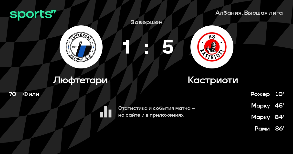 Пуя - Хуссейн, Ндреца, Шехи - Шеху, Барди, Умерай, Рожер, Марку - Ватникай, МаркуЗапасные: Зири, Незири, Сельмани, Рами, Фейзай, Цаца