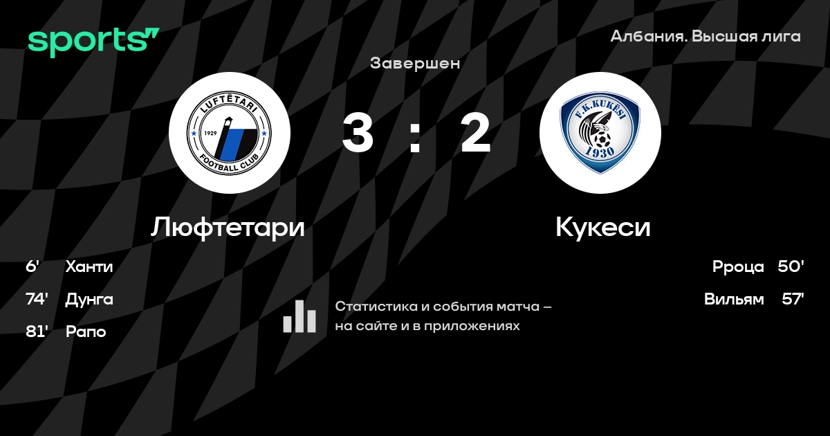 Фрашери - Текья, Цуцули, Румбулаку - Чюрбья, Лимай, Дзария - Режиналду, Шкуртай, Вильям, ЭтхемиЗапасные: Гомис, Шамети, Джемаили, Селими, Йоти, Мусоли, Рроца