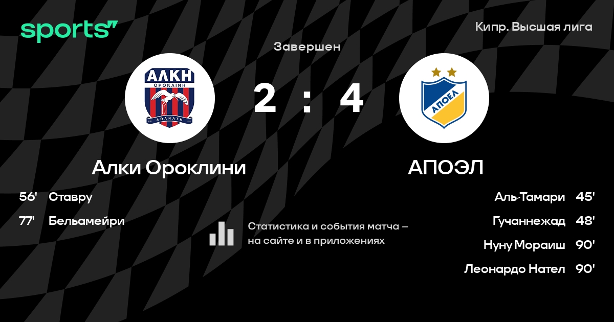 Panagi - Christofi, Шерфа, Charalambous, Флорес - Gadacha, Шполярич, Акоста, Ставру - Иван Карлос, БельамейриЗапасные: Киньонес, Charis, Theocharous, Старокин, Трайчевски, Antoniou, Элиа, Constantinou, Vasiliou