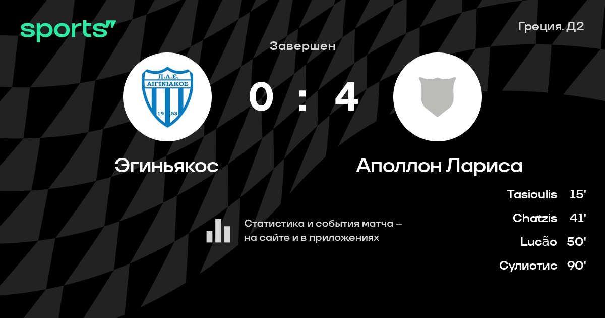 Эгиньякос – Аполлон Лариса: коэффициенты