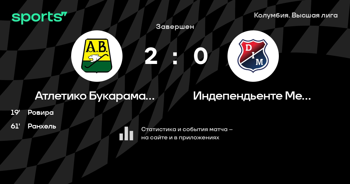 | 5 | Индепендьенте Медельин | 19 | 9 | 7 | 3 | 29 | 19 | +10 | 34 | ||